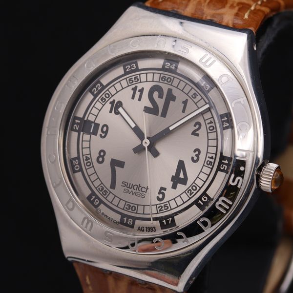 - 箱/保付 稼働 良品 スウォッチ 1.55V QZ シルバー文字盤 ラウンド メンズ腕時計 OSW 2000000 NSK