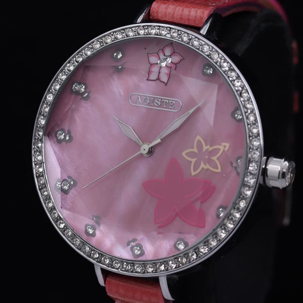 - 稼働 良品 アビステ QZ マルチカラー文字盤 ピンク ラウンド レディース腕時計 OSW 2000000 NSK