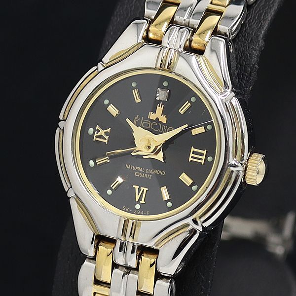 - 稼動 良品 クロイゼ QZ カットガラス 石付 黒文字盤 レディース腕時計 MTM