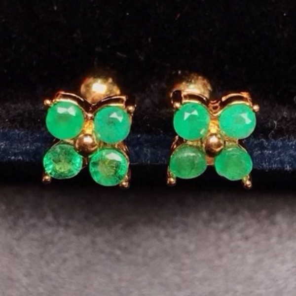 > 天然コロンビアエメラルドピアス 鑑別付き 天然石 ナチュラル ビンテージ アクセサリー カラーストーン 宝石 Yu_6586