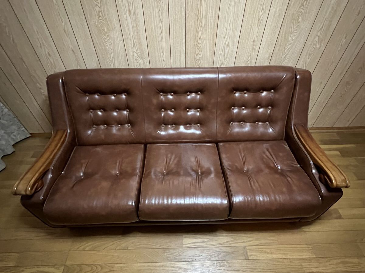 - ブラウンレザーソファ クラシックデザイン ソファ 三人掛け レザー調