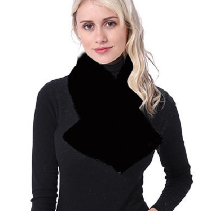 - マフラー フェイクファー シンプル 柔らか肌触り スリットあり(ブラック)新品