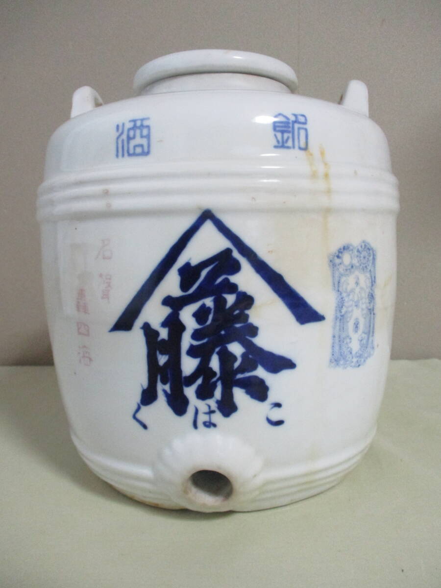- 酒樽 酒甕 酒瓶 陶器製 藤 こはく 片羽町 小泉酒店 インテリア 昭和レトロ
