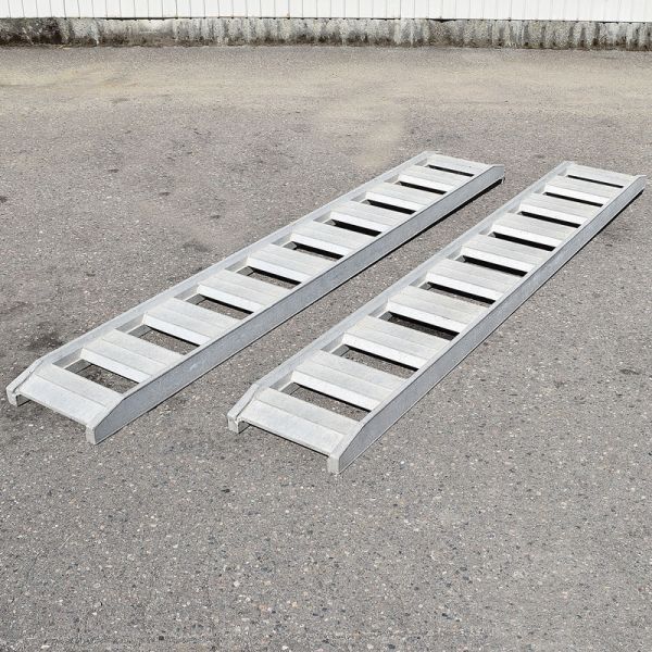 > 【新潟発】アルミブリッジ 左右セット 全長 約240cm 幅 約35cm 約2400mm ツメ式 ラダー 歩み板 あゆみ板 積載 積込 農機具 工具 中古 北陸
