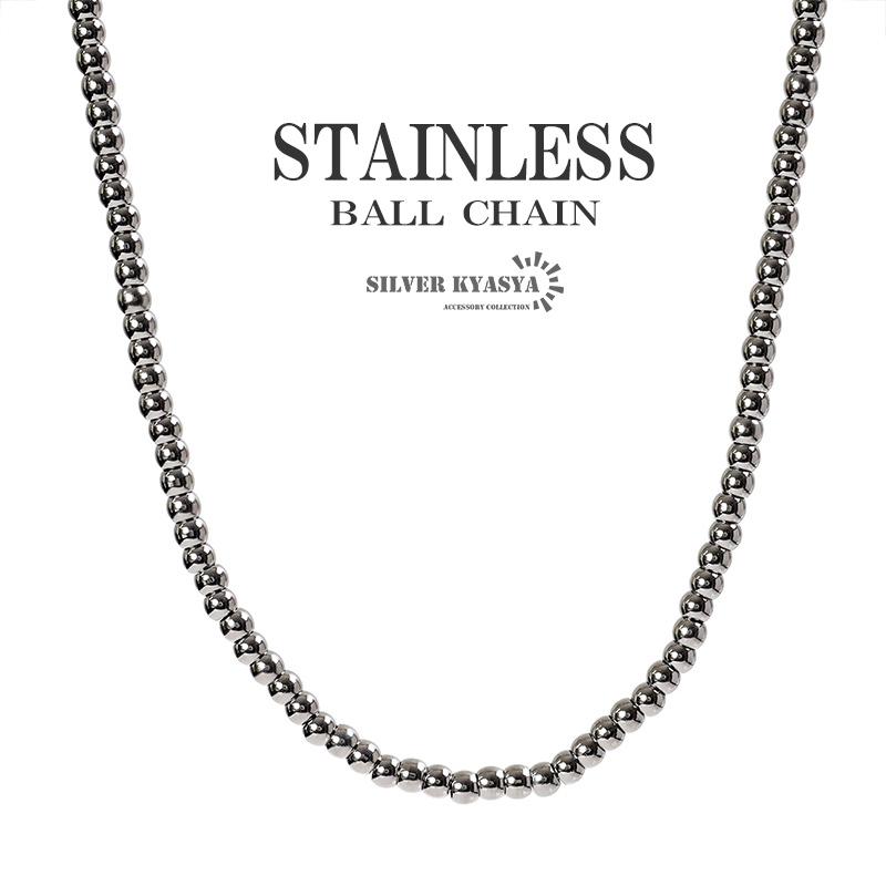 - ステンレス ボールチェーンネックレス シルバー シンプル 大きめ 太め 丈夫 メンズ 普段使い 50cm 60cm (50cm)