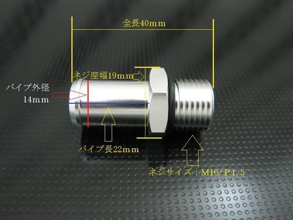 - アルミ ストレートホースジョイントアダプター ネジ部M16/P1.5 パイプ外径14mm 1個