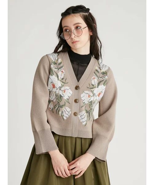 - 定価19,800円 FURFUR ファーファー ブーケジャガードカーディガン ベージュ