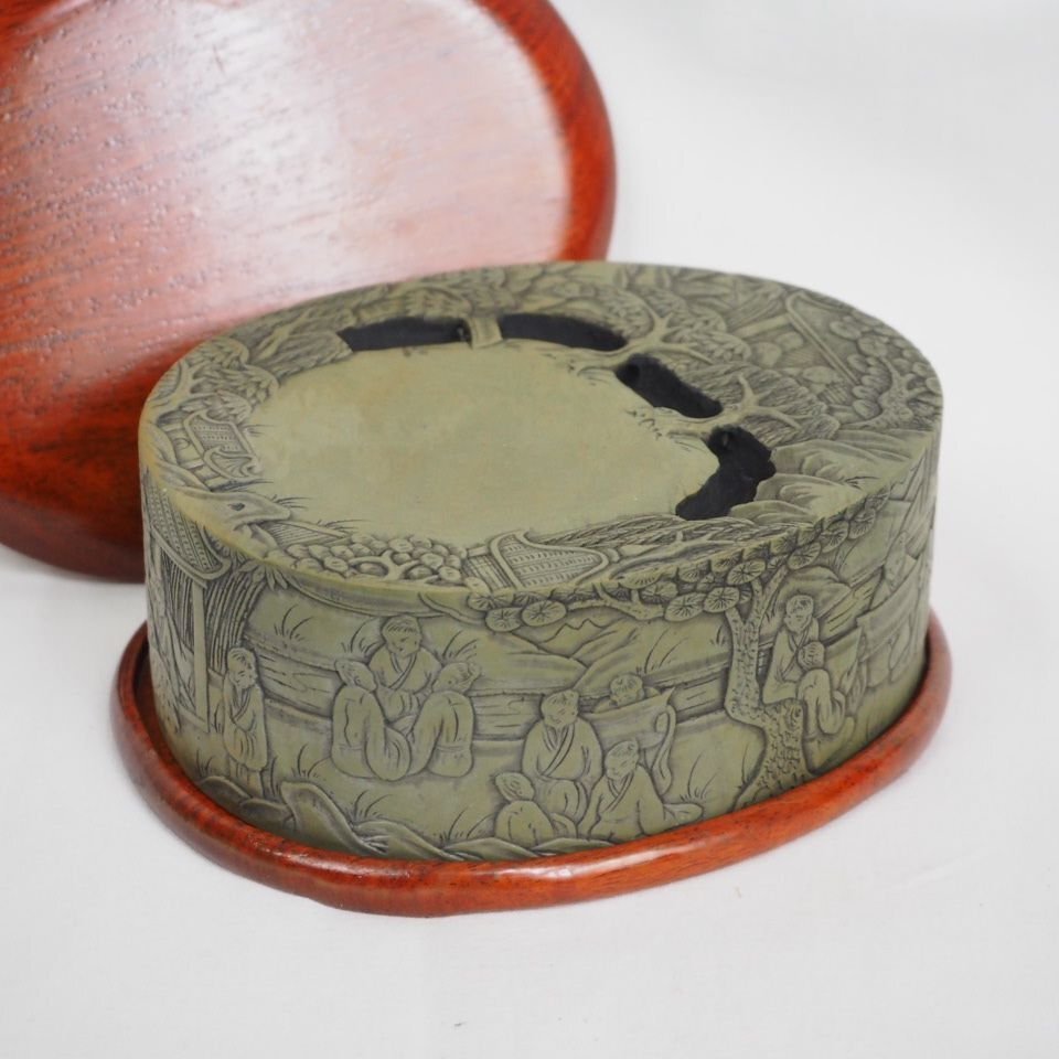 - 【金富士】値下げ中 中国80年代硯 蘭亭硯 13×10.5×5.8cm 重さ1.25kg 書道具 検/唐物中国古玩骨董墨和紙文房具硯筆三星紅星