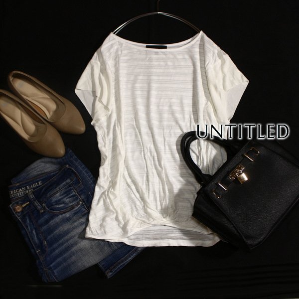 > 美品 UNTITLED アンタイトル 異素材切り替え 柔らかレーヨン カットソー 2号 M 春 夏 25A09