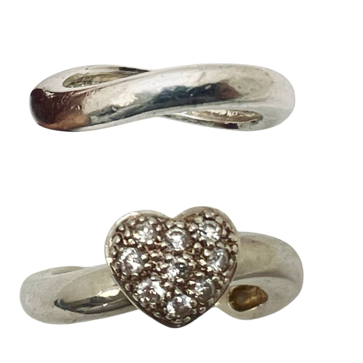 - 【USED品】*ユニセックス*SILVER925 ハートモチーフ リング 約11号(#11)/ ジルコニア付きシルバー925デザインリング 925刻印 指輪