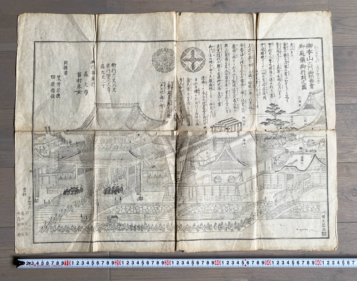 - ◆真作『寺院図』木版摺 阿弥陀堂 御行列図 寺院行事 浄土真宗 江戸時代 古文書 Y-091304
