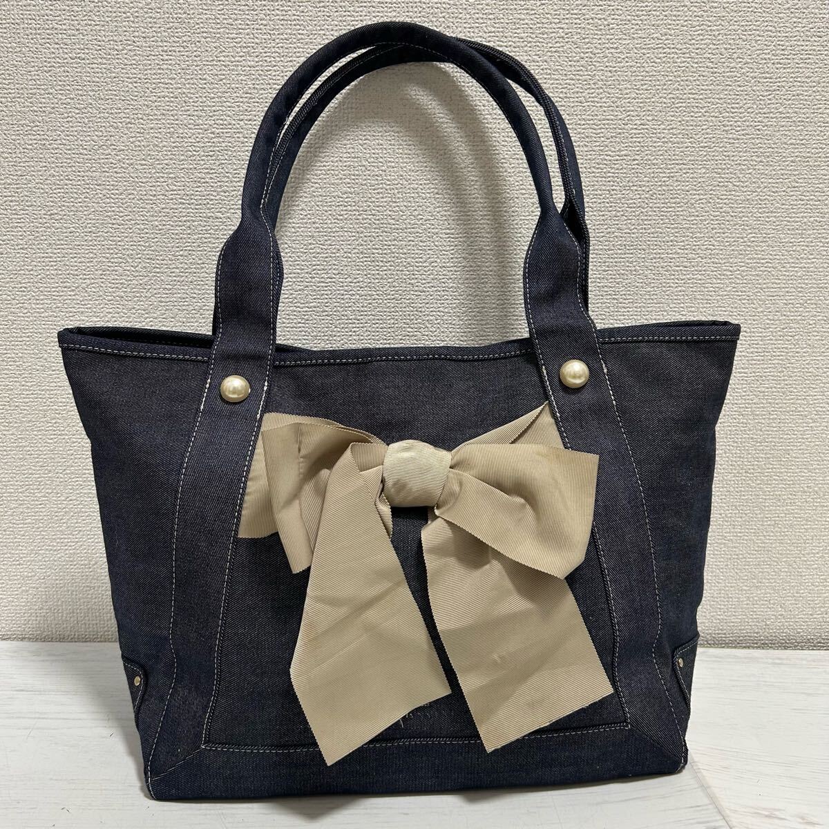 - LANVIN en Bleu ランバンオンブルー レディース 肩掛け トートバッグ ハンドバッグ リボン デニム キャンバス グレー 大容量 ブランド