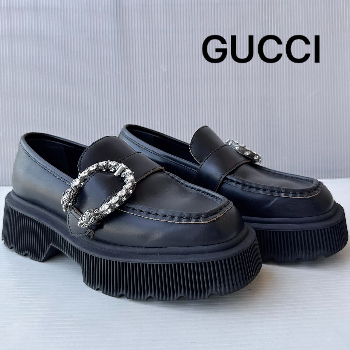- GUCCI グッチ 厚底 プラットフォーム ローファー 革靴 ビジュー クリスタル デュオニュソス 美品 レーディス シューズ 靴 36.5 黒 レザー