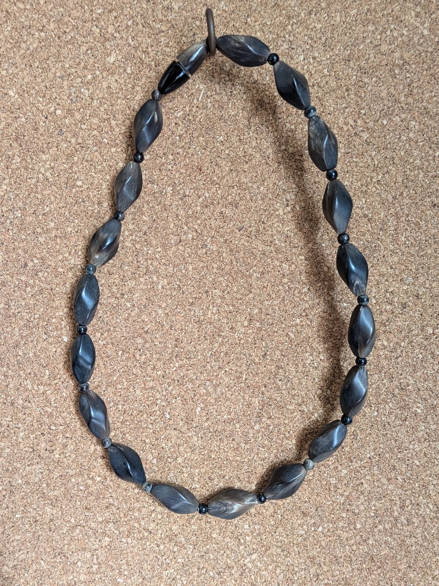 - ひし形ネックレス ウッド調 首周り直径14.5センチ ケースシミあり アンティーク レトロ【SHK-91401】