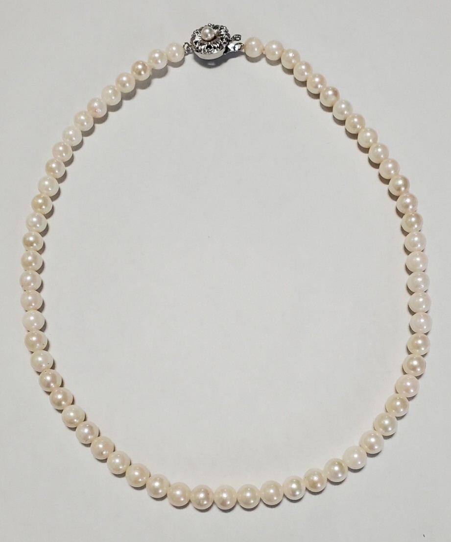 - SILVER シルバー刻印 アコヤ真珠 6.8㎜ 本真珠 パール ネックレス レディース アクセサリー 42,5cm 29,2g 美品