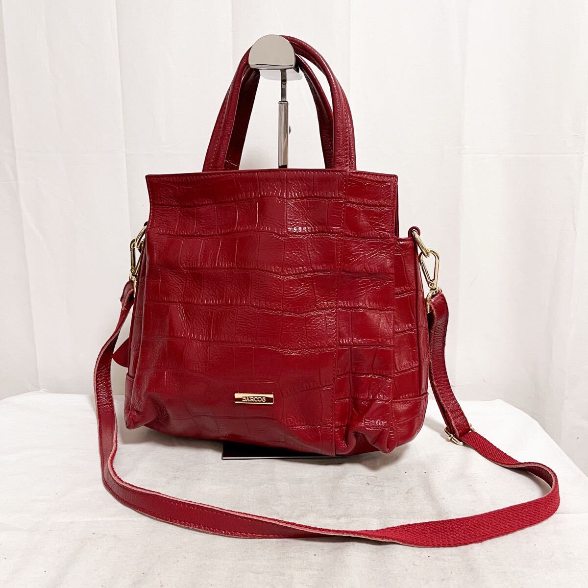 - 和837★ BARCOS バルコス ハンドバッグ ショルダーバッグ クロコ型押し レッド レディース