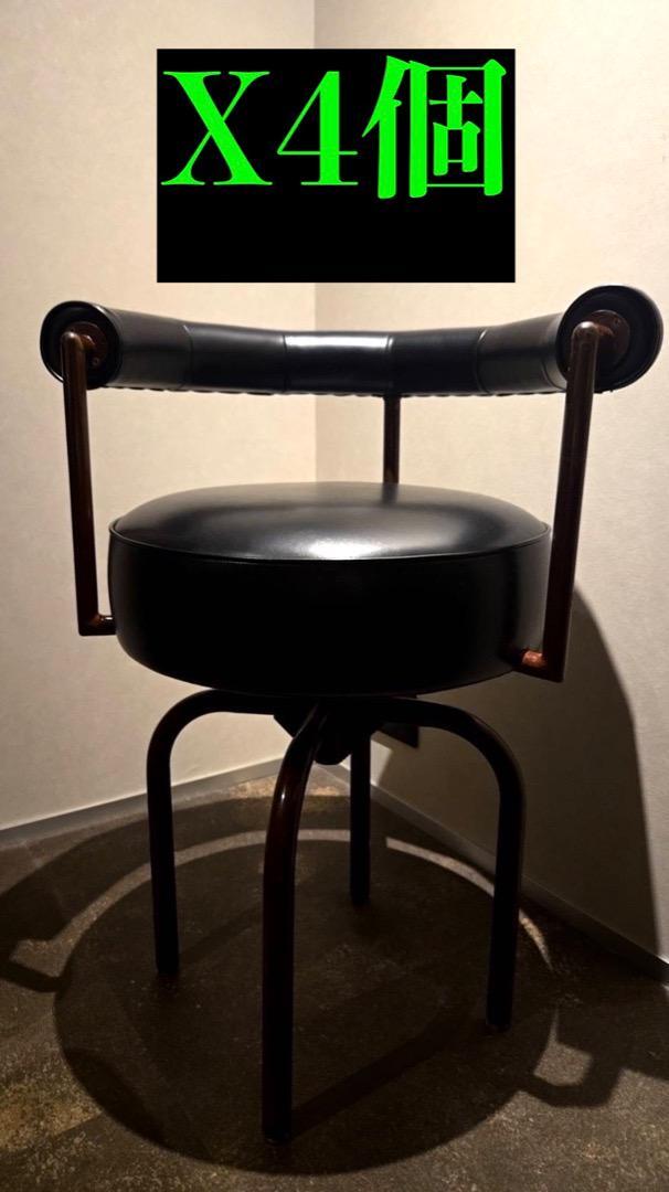 > ○1970年代 カウンターチェア アームチェア 4脚セット 回転式 レザーウレタン新調済み ル・コルビュジエ カッシーナ LC7型 東京手渡し可能