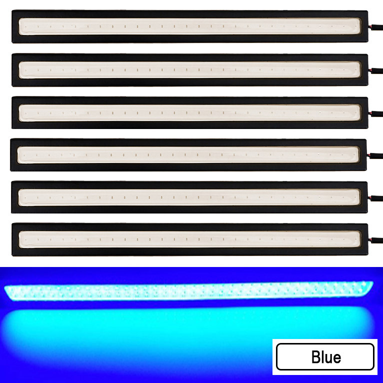 > ★ LED デイライト バーライト COB 全面発光 (ブルー) / 17㎝ 12V 両面テープ付き 防水【6個セット】 ★ 送料無料 ★