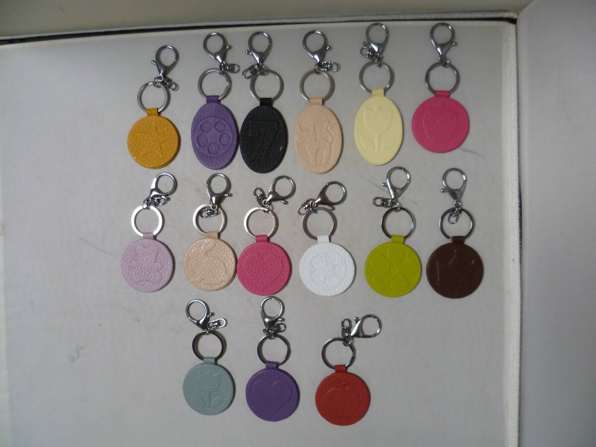 - 型押し(お花/動物など) 色・形・柄 色々 レザー?キーホルダー 15ヶ