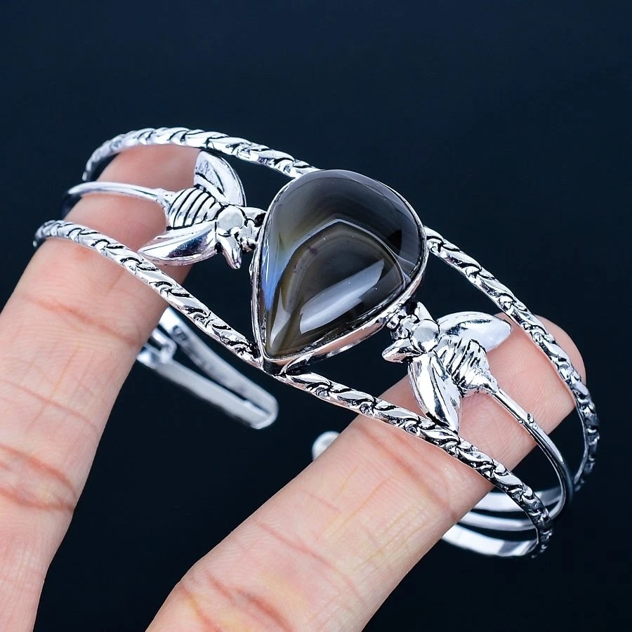 > 瑪瑙 アゲート 今回限り 手元にあります。縞模様の瑪瑙925シルバーメッキハンドメイドカフブレスレット(フリーサイズ)