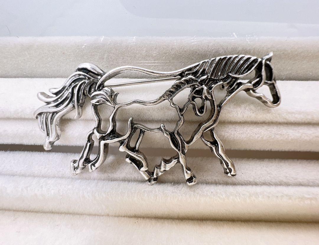 - 【ブローチ】馬 ホロアウト アンティークシルバー 乗馬 馬術 競馬