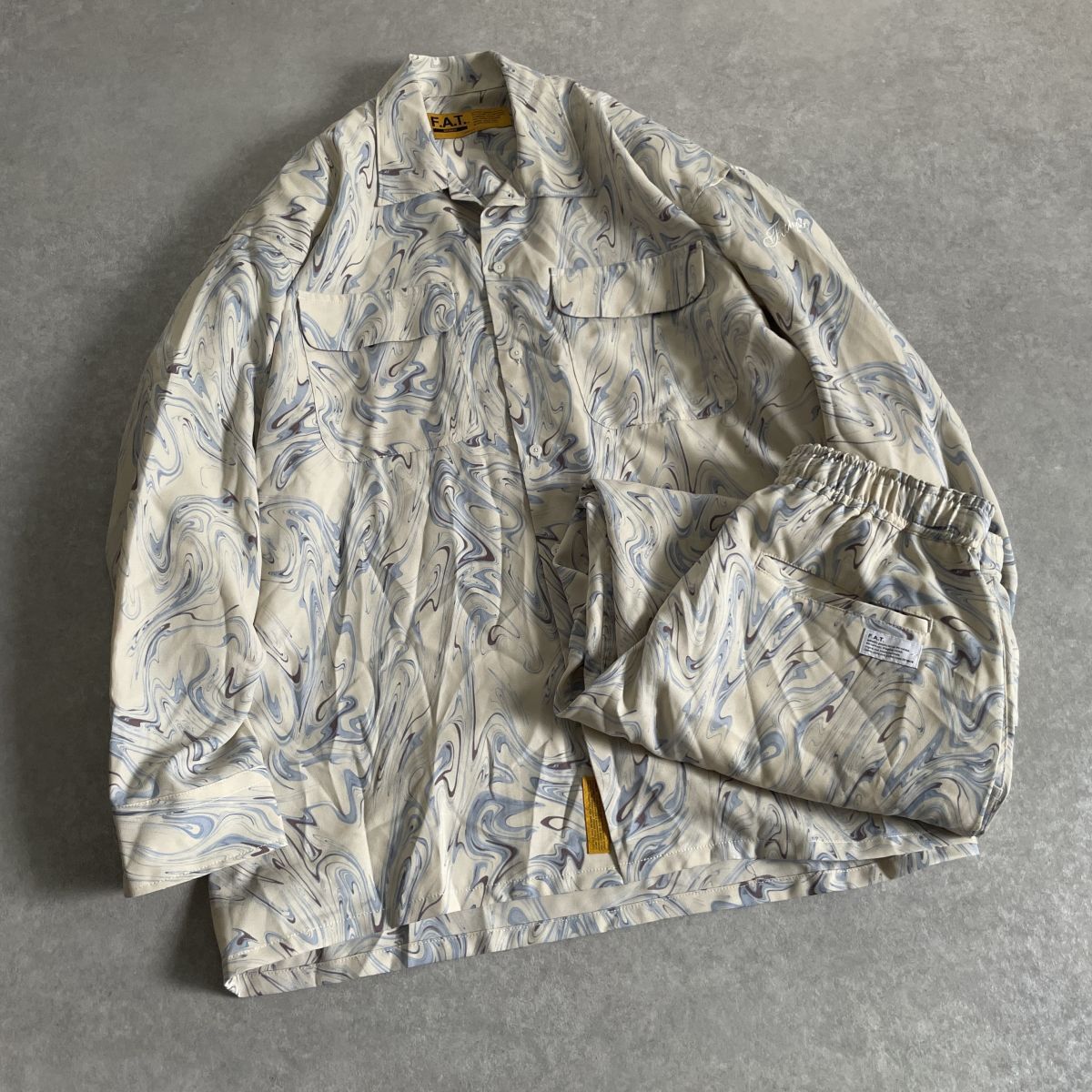 - 定価2.5万&2.8万●F.A.T.●FAT GIGARBLE●マーブル 総柄 ビッグシルエット シャツ イージーパンツ セットアップ●エフエーティー