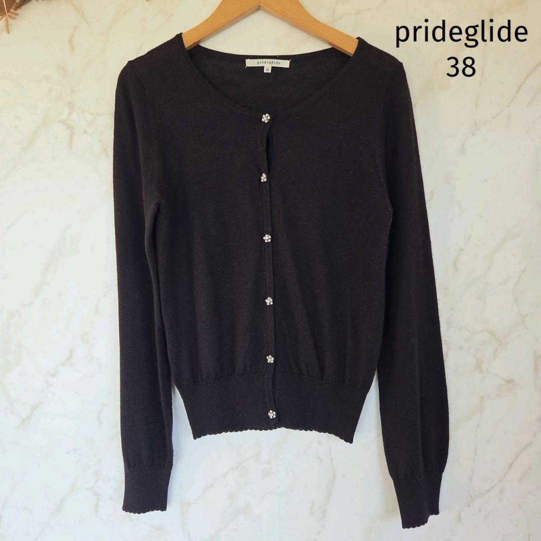 - プライドグライド prideglide ニットカーディガン 38 花柄ビジュー