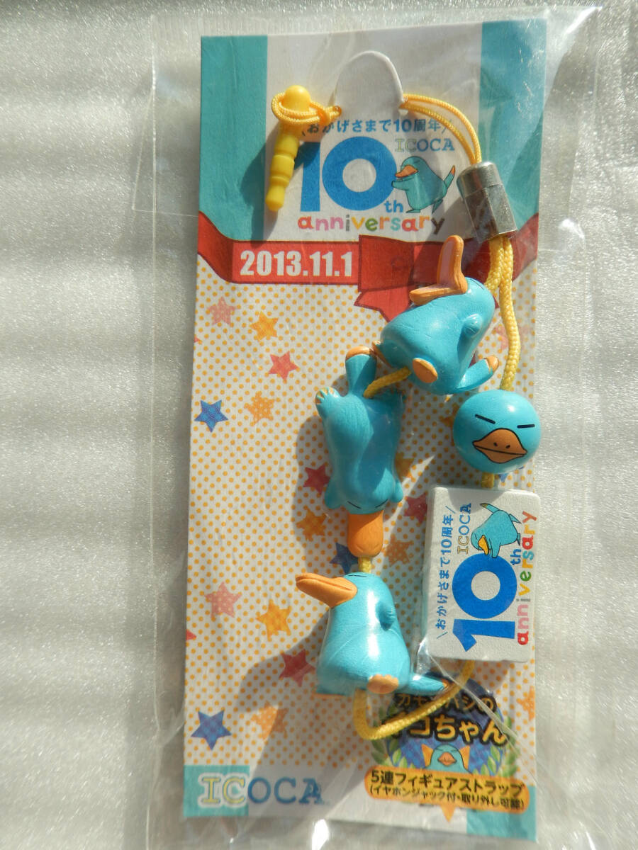 - 交通系ICカード キャラクター 《 JR西日本 ICOCA・カモノハシ の イコちゃん 10周年 記念 ストラップ 》 鉄道 グッズ 電車 ゆるキャラ