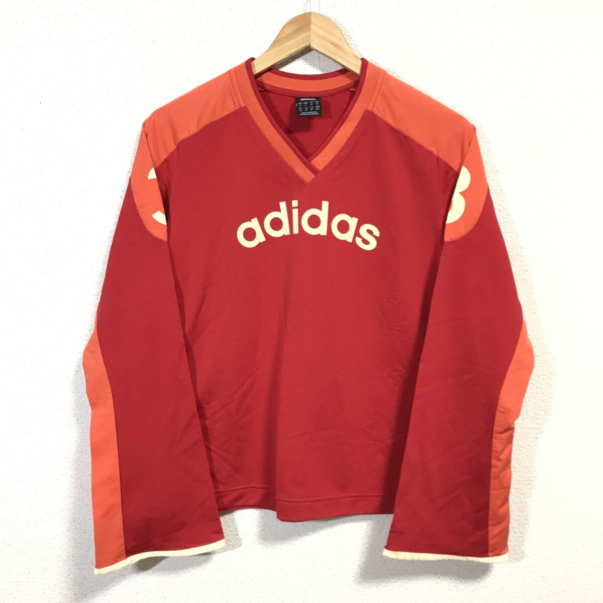 - Ye1972LL 希少 adidas アディダス サイズOT Vネック プルオーバー 長袖Tシャツ レディース レトロアディダス ロゴプリント 古着 スポカジ