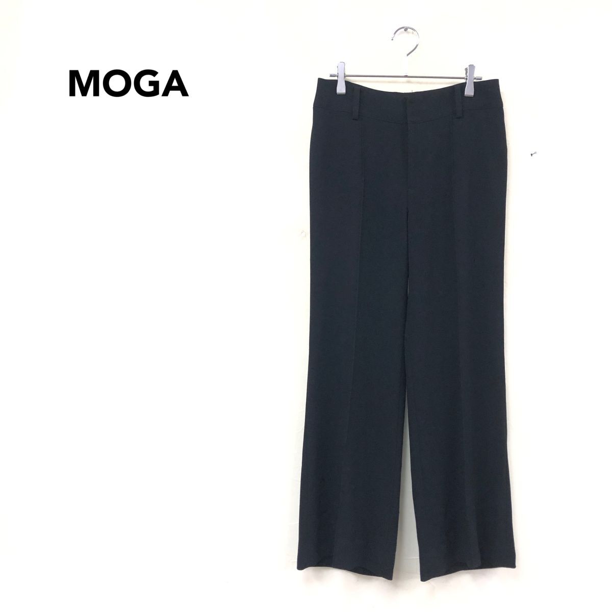 > 2K1971-K◆日本製 MOGA モガ ワイドフレアスラックス◆size3 ブラック 無地 センターステッチ 薄手 キレイめ シンプル レディース