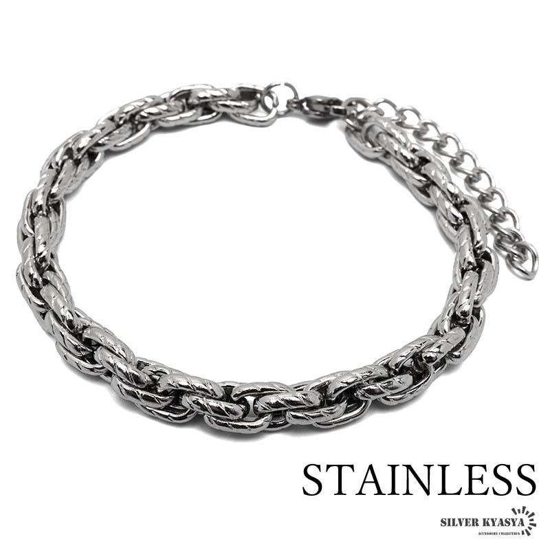 - ステンレス ロープチェーンブレスレット 太幅 ギザギザ コインエッジ ツイストチェーンブレスレット シルバー メンズ 金アレ対応
