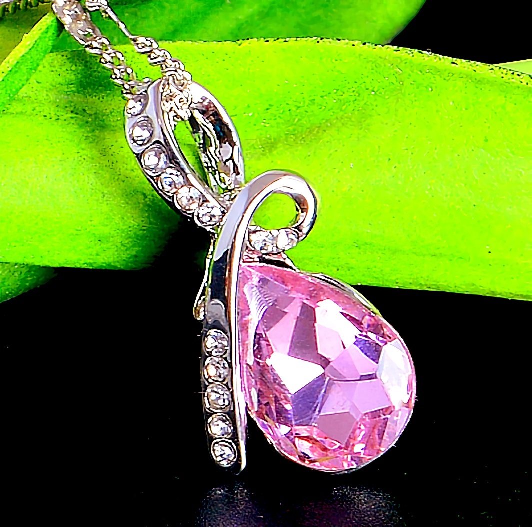 > 新品1円~★送料無料★桜ピンクダイヤモンド ドロップ雫プラチナ仕上 925シルバーネックレス誕生日プレゼント旅行連休秋祭冬ギフト国内発送
