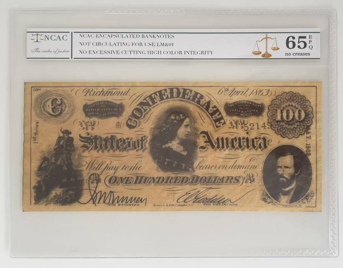 - 米国紙幣・南北戦争、南部のアメリカ連合国・100ドル
