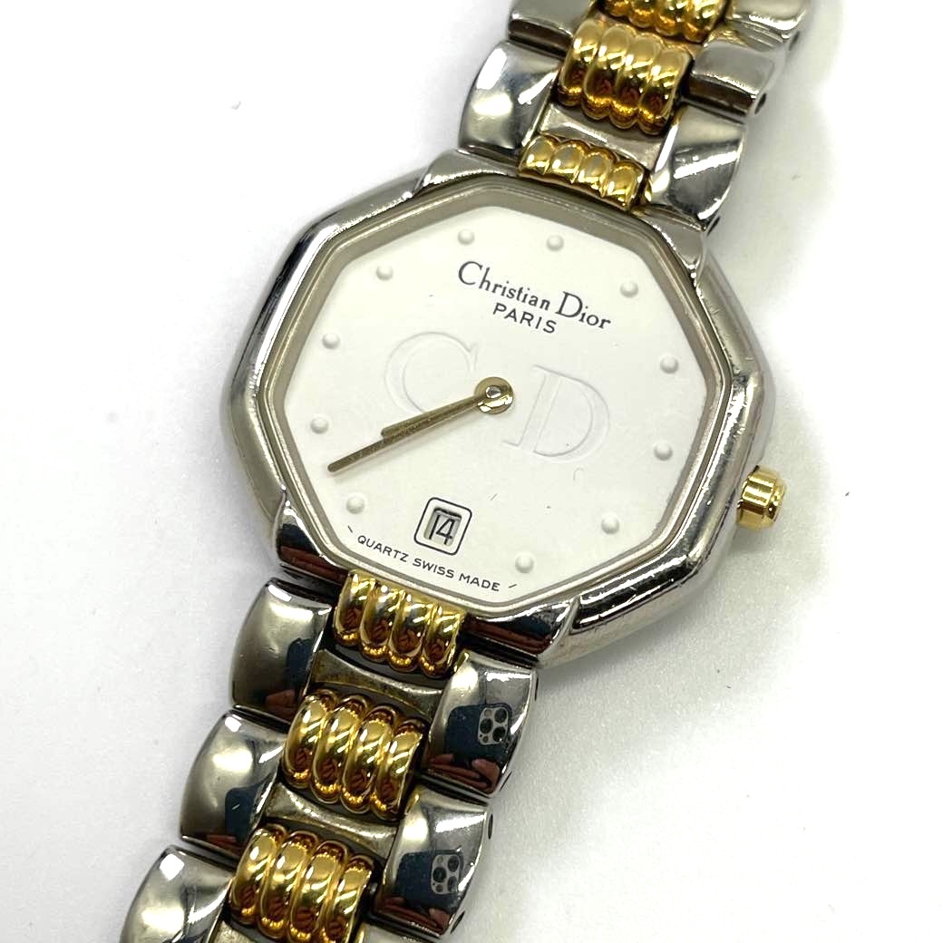 - Christian Dior クリスチャンディオール 稼働 オクタゴン デイト QZ レディース SS/GP 白文字盤 #A3558