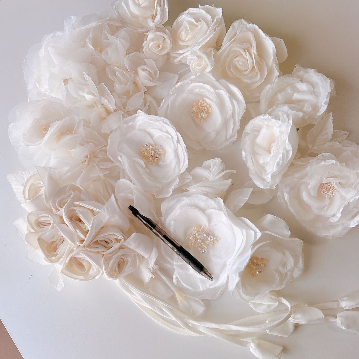 - 結婚式場使用 イベント装飾 ブライダル 装飾 花 コサージュ 造花 アイボリー 白 結婚式 ウェディング 装花 安全ピン付き 10点セット