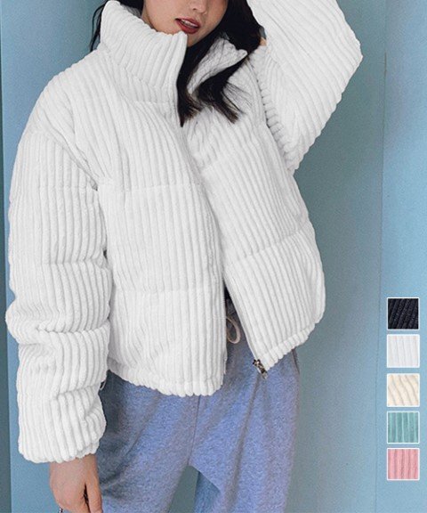 - コーデュロイ 中綿ジャケット 長袖 ショート丈 ジャケット アウター コート 羽織 シンプル カジュアル もこもこ M ブラック