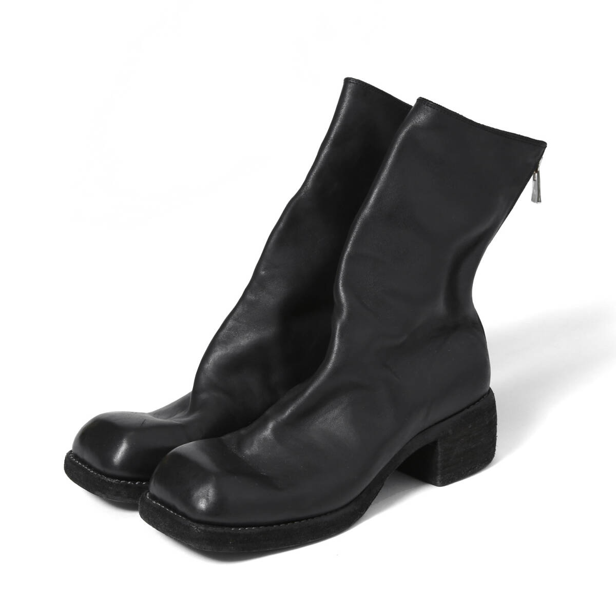> 希少 新品 GUIDI グイディ / 79086 Horse Full Grain / Double Sole / Square Toe Back Zip Boots / size 41 (25.5cm) Black ホースレザー