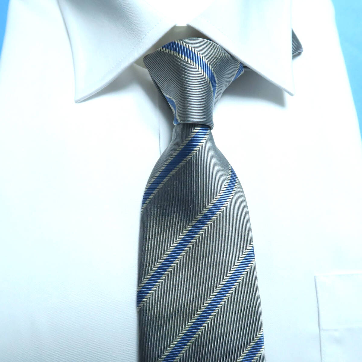 > W083■オンワード樫山 五大陸 GOTAIRIKU 未使用品 ハンドメイド 日本製 グレー色系 レジメンタル 絹100% 上質 高級ネクタイ11000円