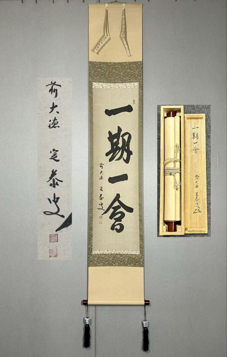 - 【模写】F-72掛軸 紙本 共箱 撒金 茶掛 茶道具 華道 花道具 小堀定泰 臨済宗大徳寺派孤蓬庵『一期ー会』
