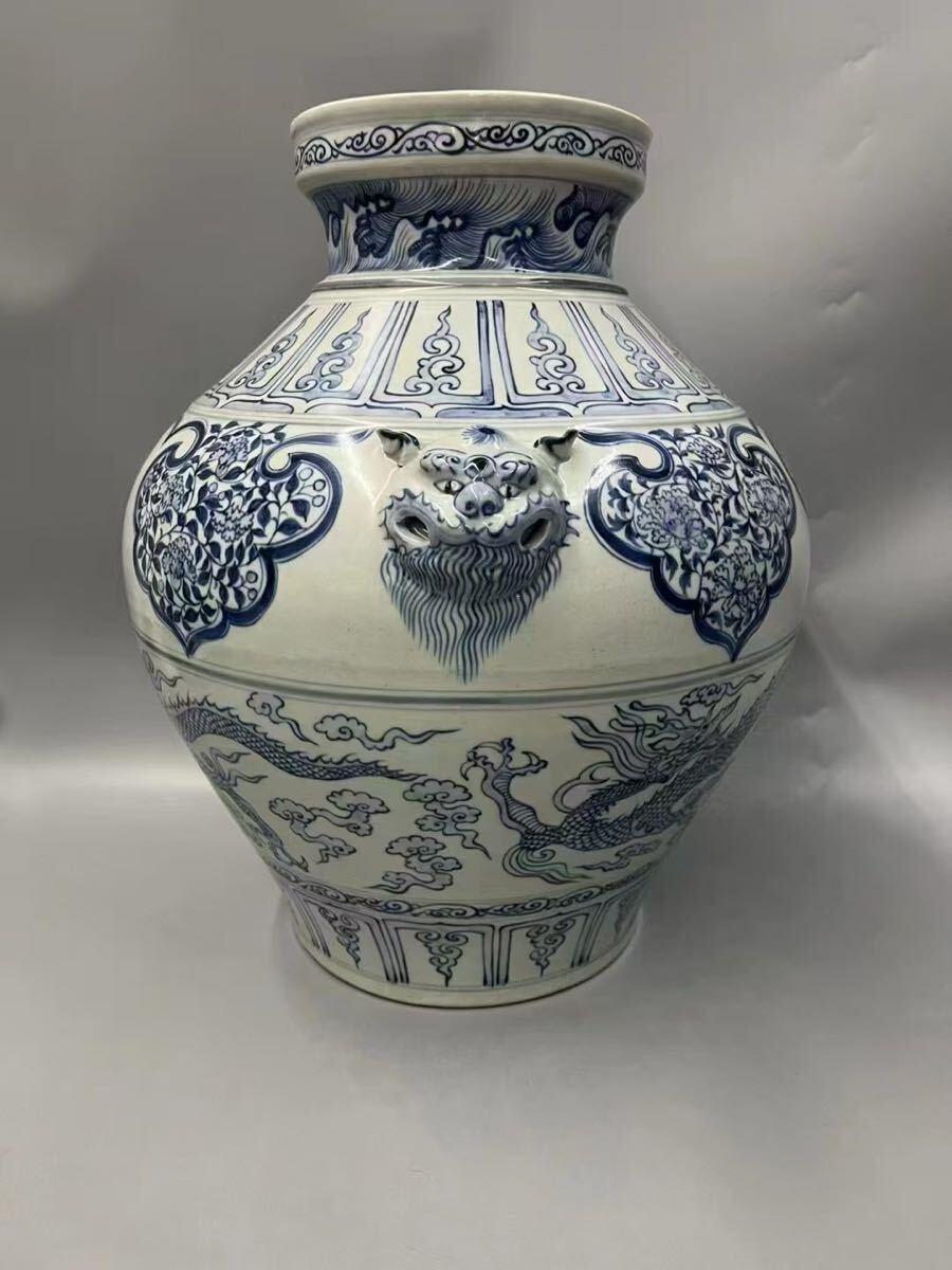 > 【竹河】中国古美術 古玩 元時代 元青花 犬首 罐 水入 時代物 唐物 古玩 骨董 藏出 置物 骨董品 当時物 置物 飾壺 旧家藏出 sa48 高さ40cm