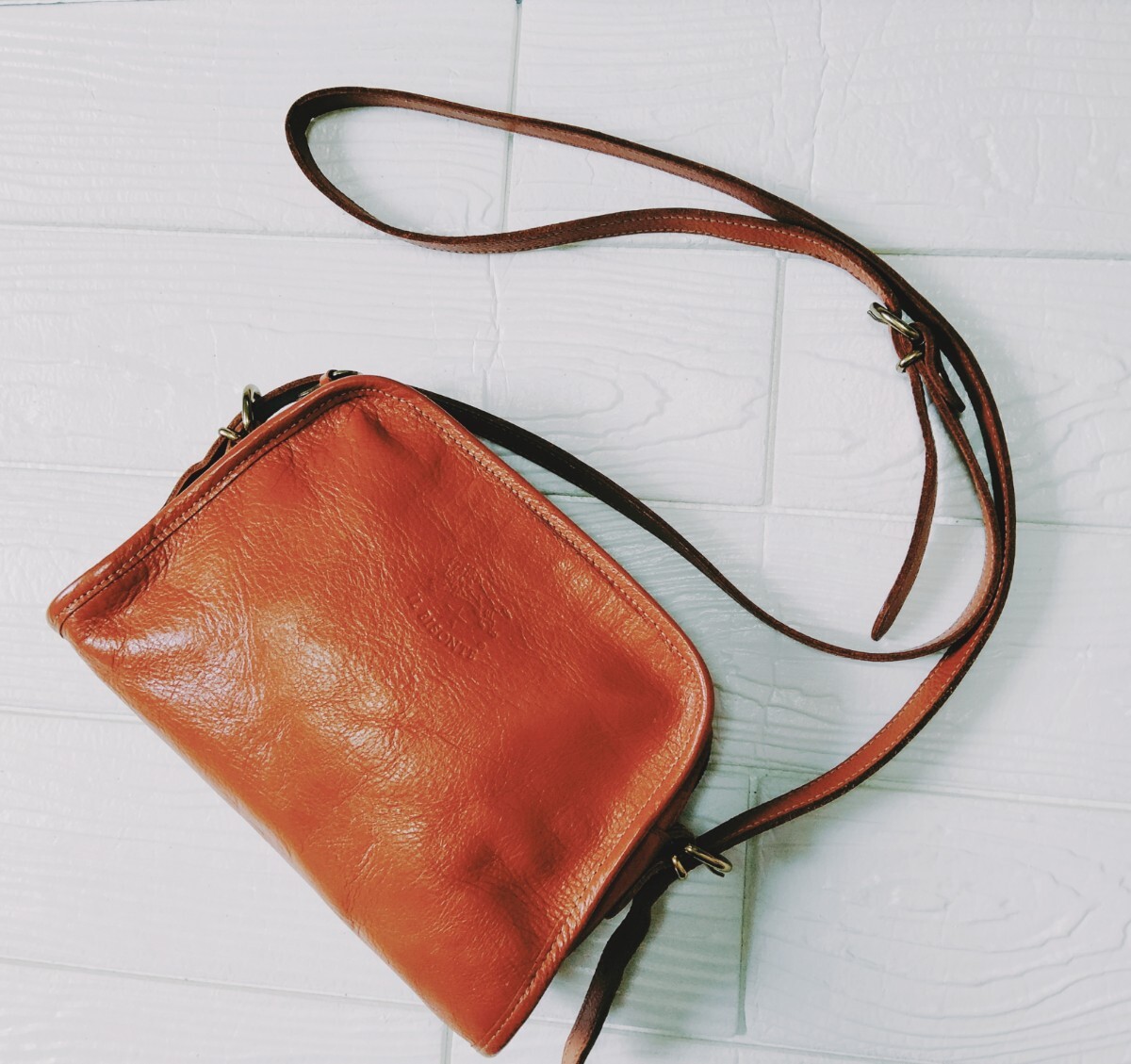 > IL BISONTE*イル ビゾンテ*クロスボディバッグ*ショルダーバッグ*レザー*牛革*イタリア製*ファスナー*ななめ掛け*オレンジ*ヤケヌメ