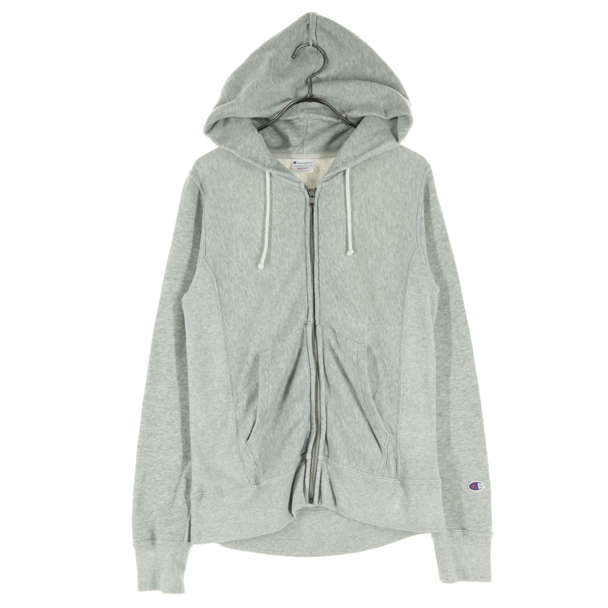 美品 Champion チャンピオン 袖ロゴワッペン 長袖 ジップパーカー M グレー レディース拍卖