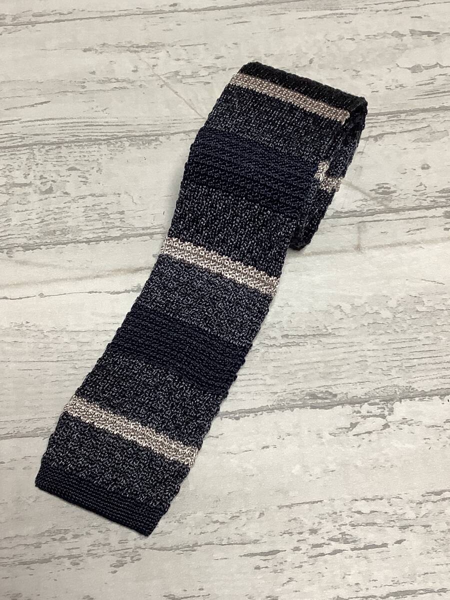 - 新品未使用★送料無料★大剣幅約6cm★グレー系 ボーダーニットタイ シルク100%