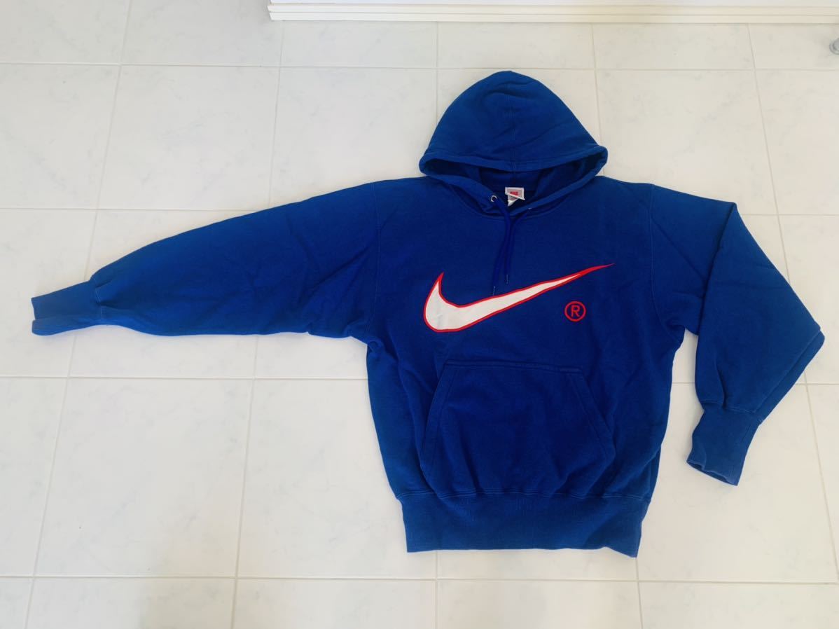 - 30年モノ★ヴィンテージ古着★ナイキ NIKE スウェット サイズMセットアップ上下ビッグスウォッシュ★ブルー青フーディー パーカー