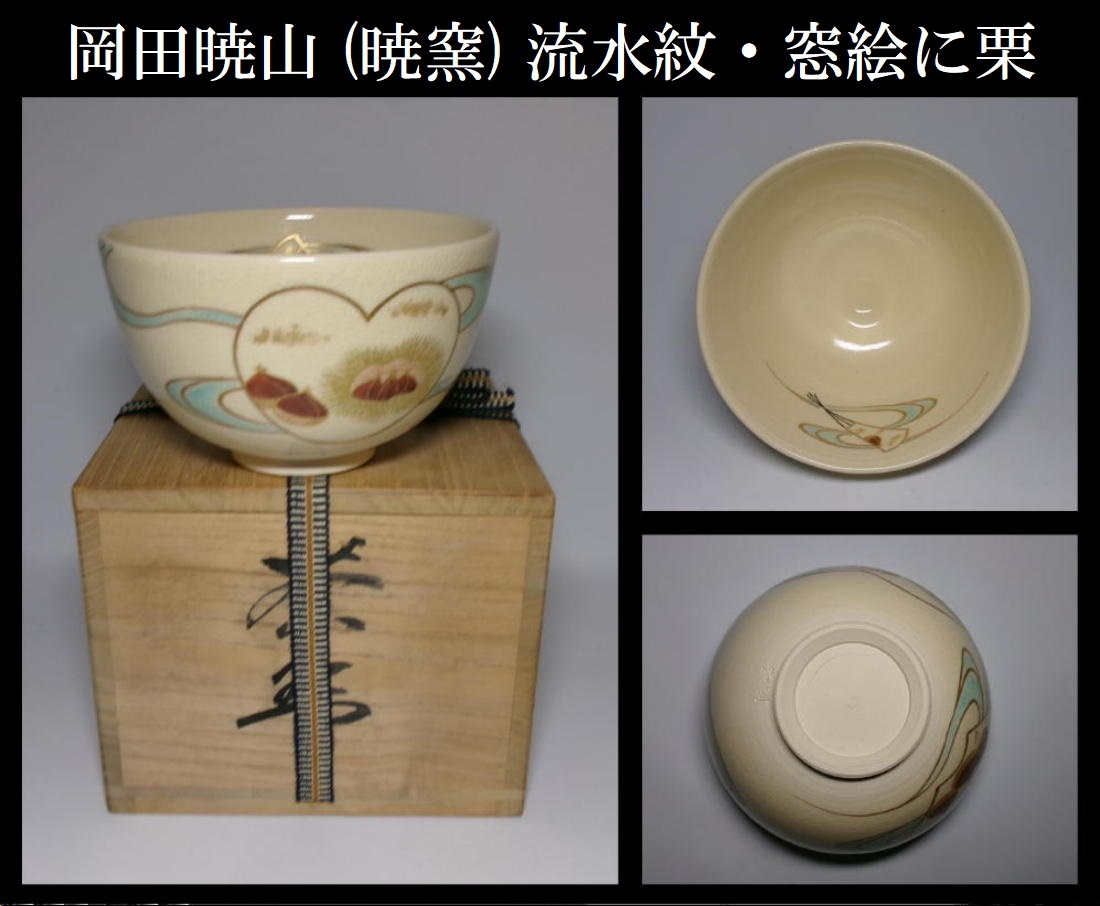 - 【真作保証】岡田暁山 (暁窯) 流水紋・窓絵に栗