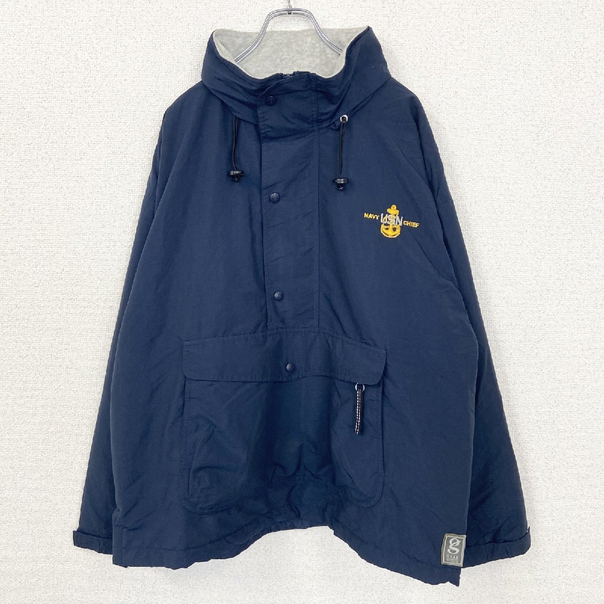- 古着 used GEAR FOR SPORTS 長袖ハーフジップナイロンジャケット プルオーバー 刺〓デザイン ネイビー Lサイズ