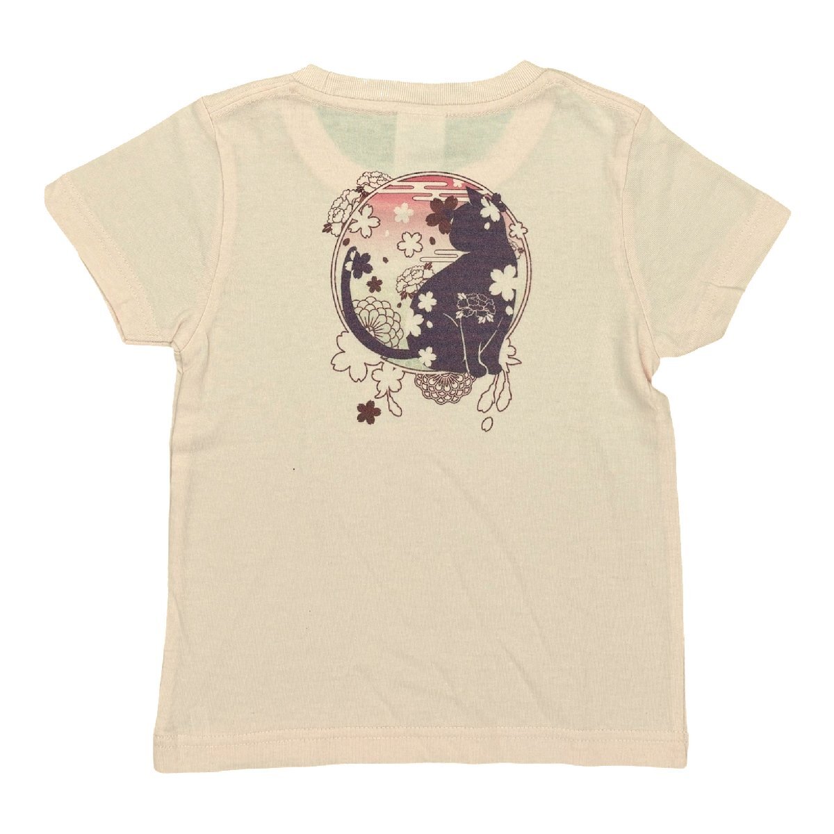- [江戸てん]1点のみ 子供Tシャツ 背面に「花猫(小)」(前面は無地) 綿100% 捺染プリント キッズ ピンク 100