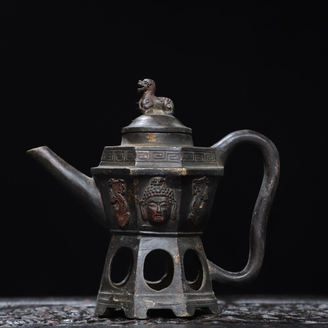 - 【超珍館蔵】銅製 拓金 釋迦牟尼壺 置物 賞物 古賞物 古董品 古美術品 時代物 旧家蔵出 稀少珍蔵品