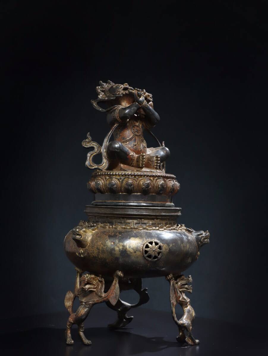 - 【超珍館蔵】銅製 拓金 金剛手熏香炉 置物 賞物 古賞物 古董品 古美術品 時代物 旧家蔵出 稀少珍蔵品