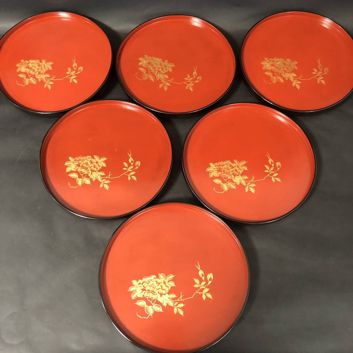 - 漆器工芸 漆塗り 沈金 6寸 おもてなし盆 菓子盆 小さな脚付き 6客 木製 漆器工芸 テーブルコーディネート